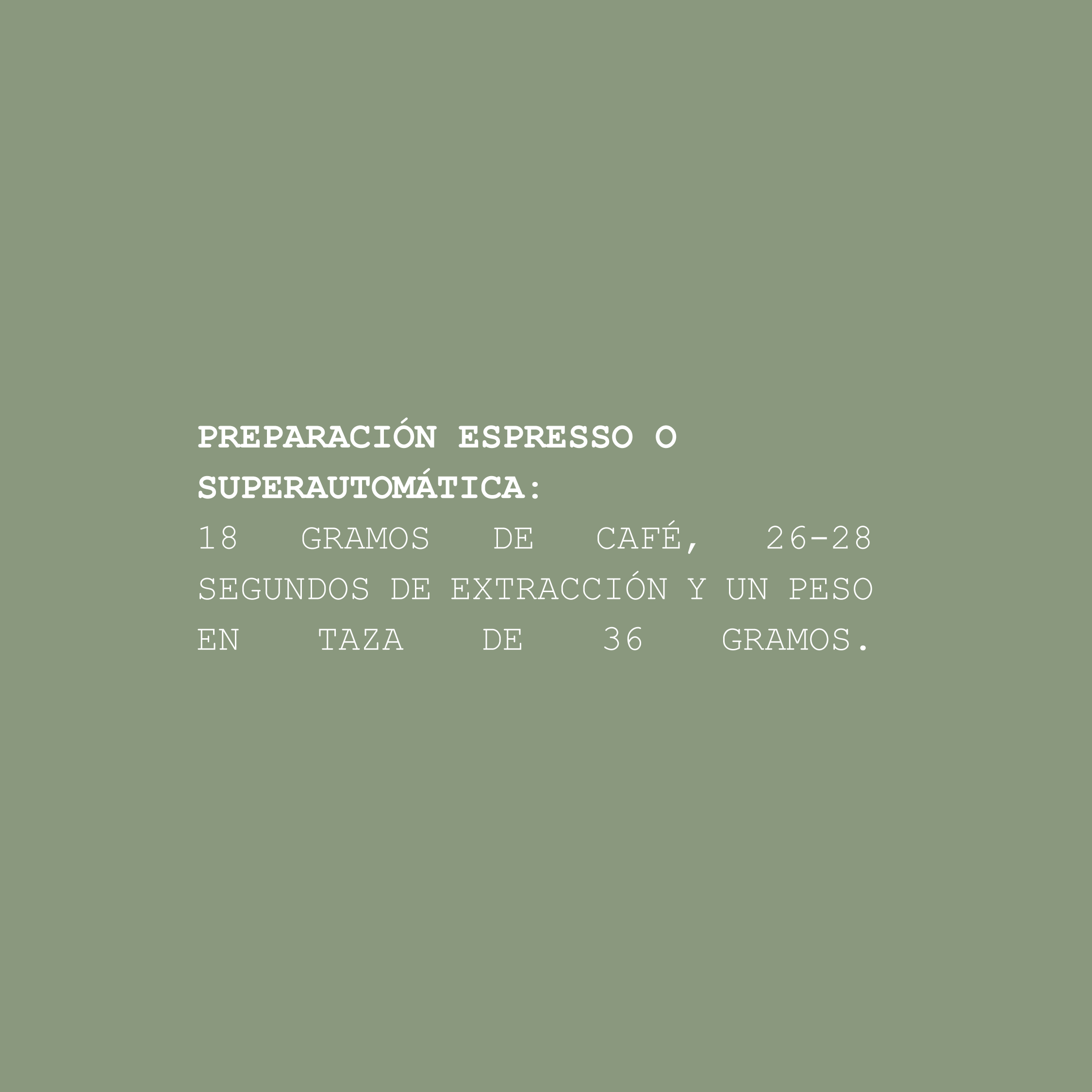 amb una recepta aproximada de 18 grams de cafè, 26-28 segons d'extracció i un pes de tassa de 36 grams,
